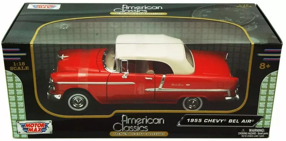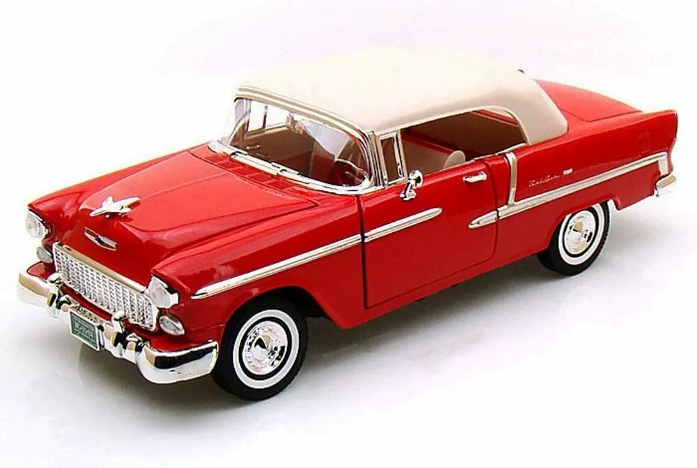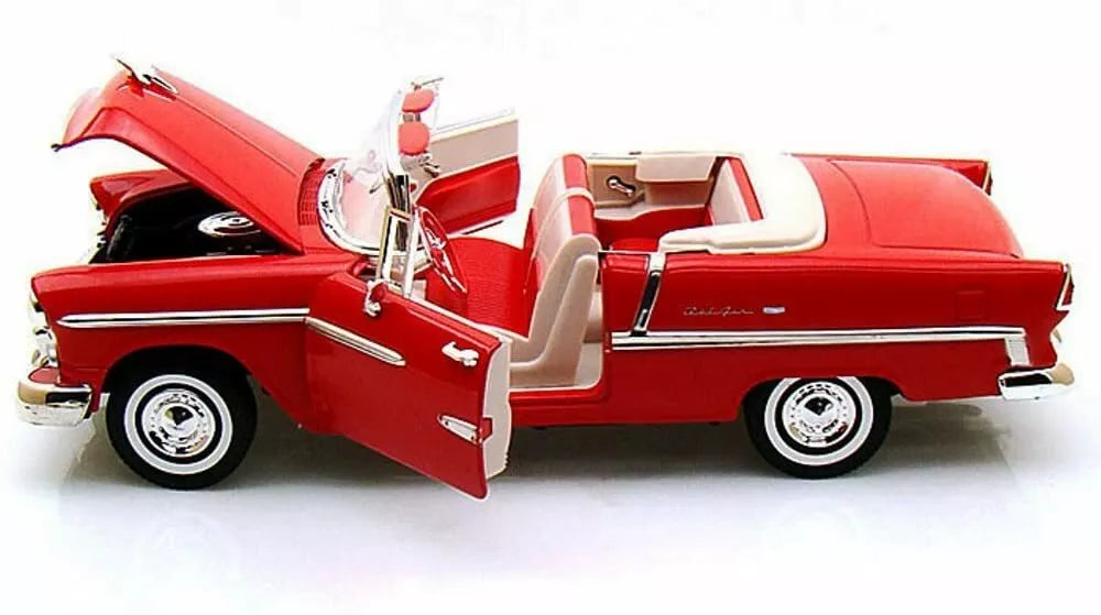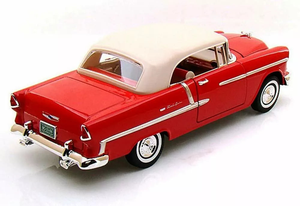 1955 CHEVROLET BEL AIR CONVERTIBLE RED SOFT TOP 1:18 MODEL CAR BY MOTORMAX 73184