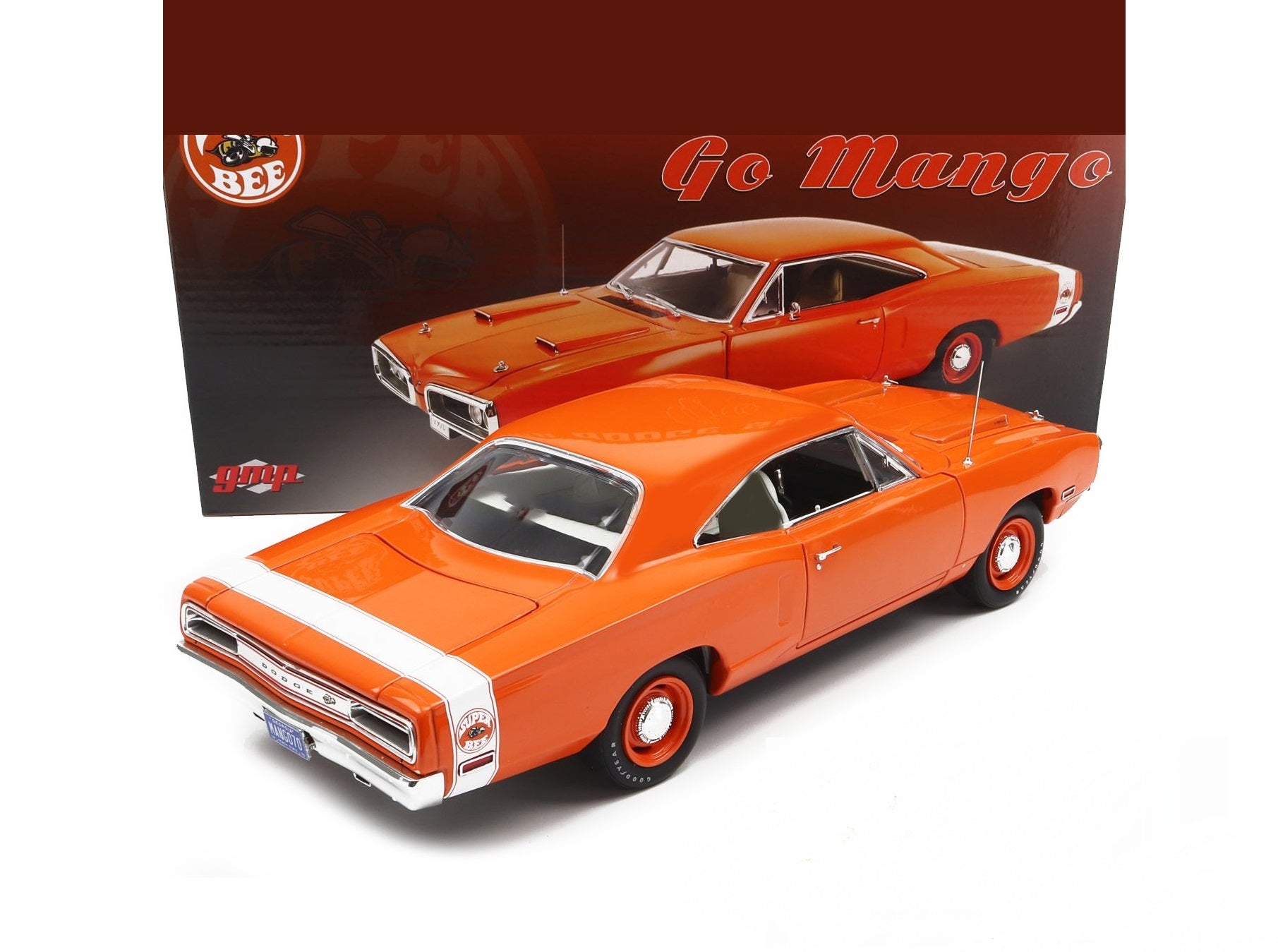 1970 DODGE CORONET SUPER BEE GO MANGO WHITE STRIPE 1:18 SCALE BY GMP 18956