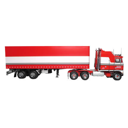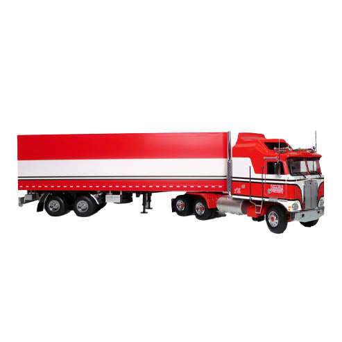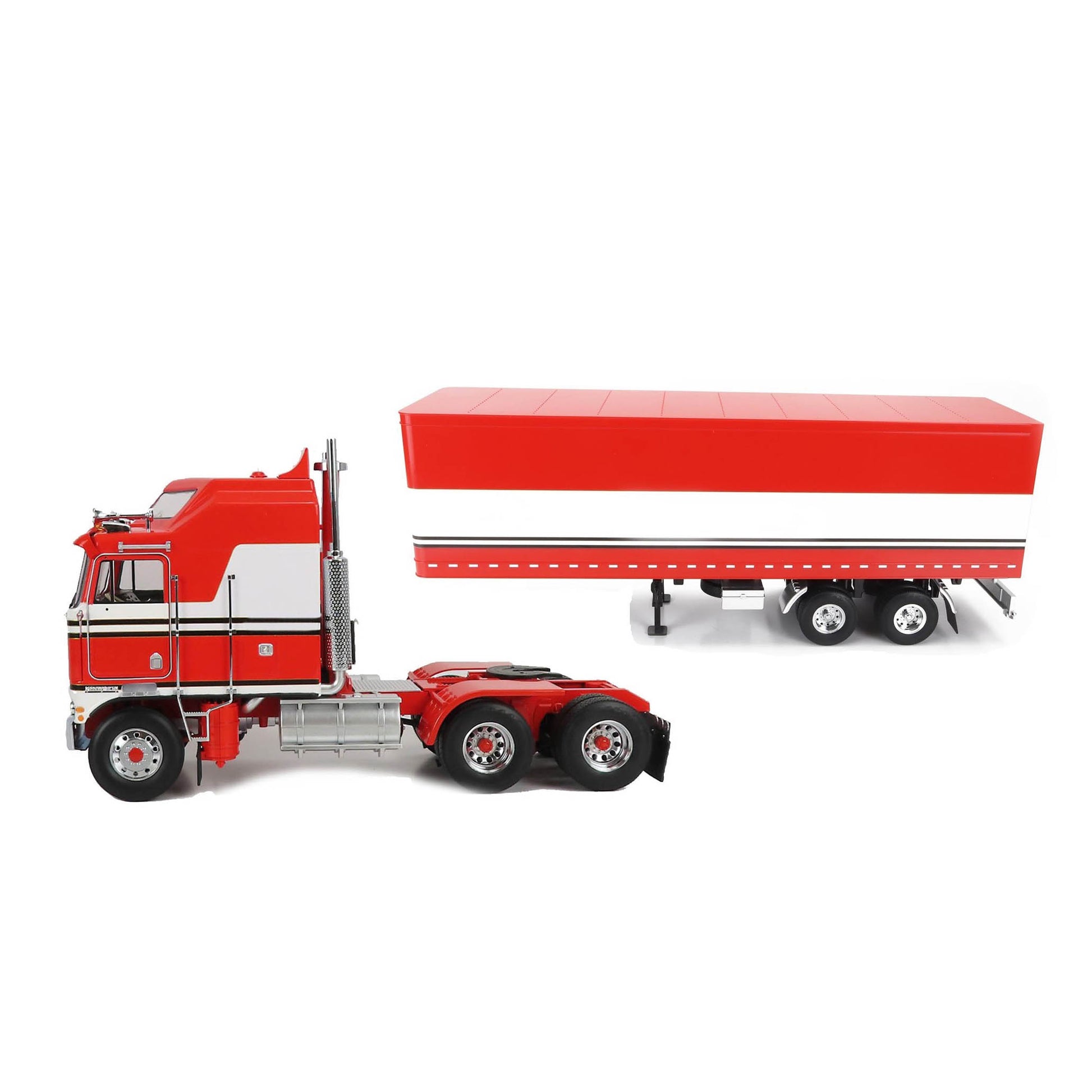 1976 KENWORTH K100 AERODYNE TRACTOR TRUCK & TRAILER RED & WHITE STRIPES 1:18 SCALE BY ROAD-KINGS SET OF "2 PIECES"